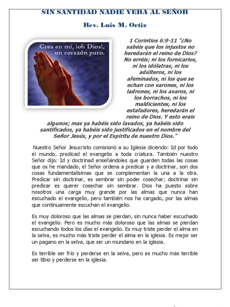Sin santidad nadie verá al Señor (Hebreos 12:14) - Mundo ... from 1.bp.blogspot.com Maybe you would like to learn more about one of these? Check spelling or type a new query. Sin santidad nadie vera al señor. We did not find results for: